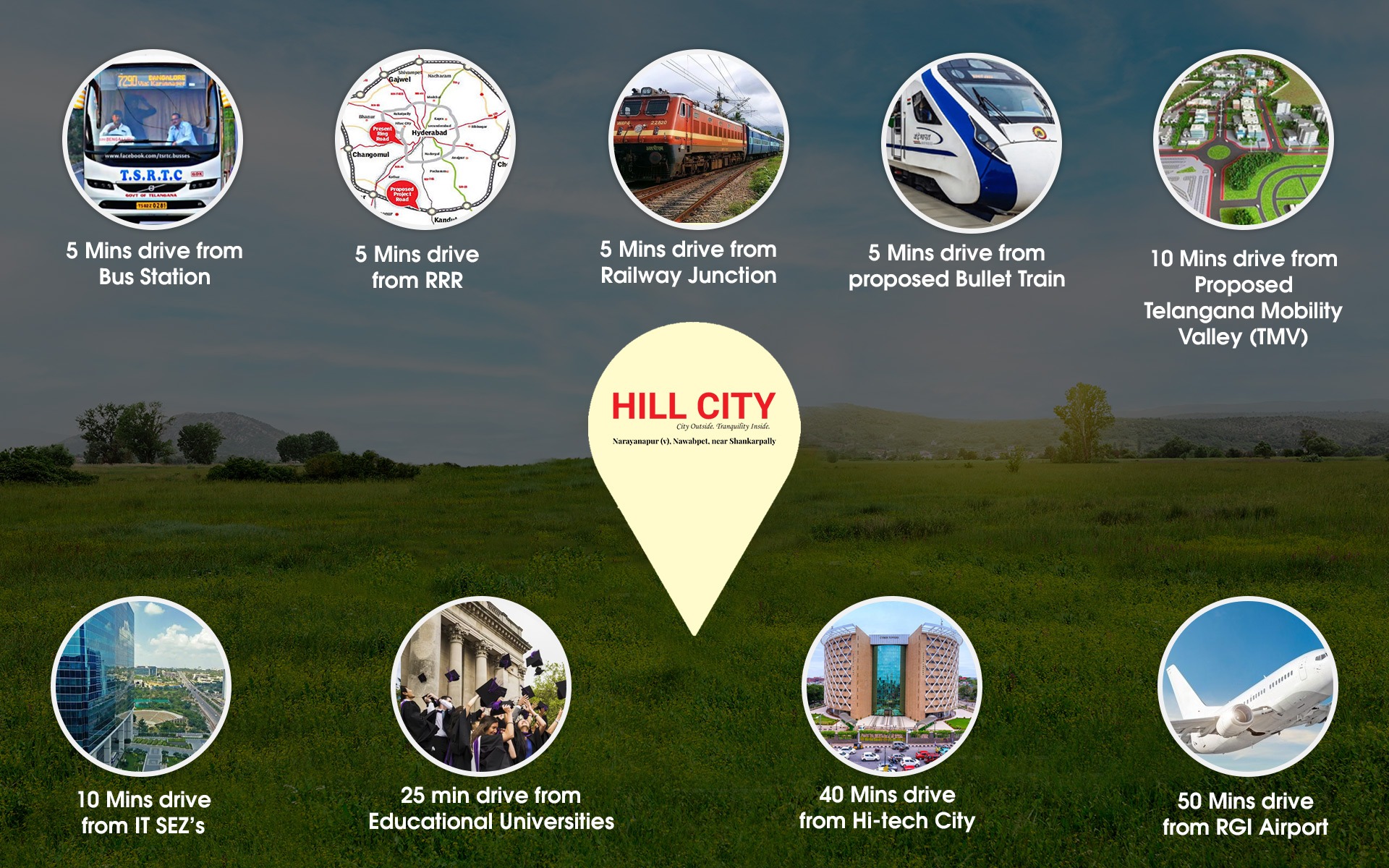 HILL CITY located at Narayanapur(v) – Nawabpet, near Shankarpally, Hyderabad.